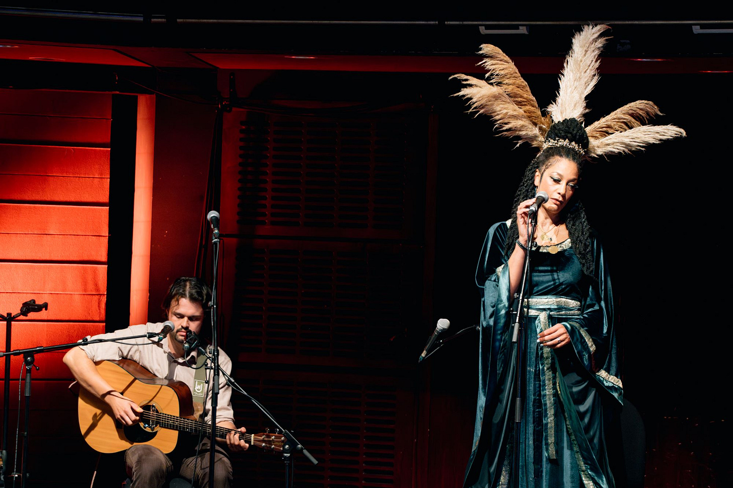 Such was her statuesque stage presence that Eliza Carthy, positioned nearby, jokily interjected that she was taller than everyone else even when sitting down – which she often was, strumming the autoharp on her knees.