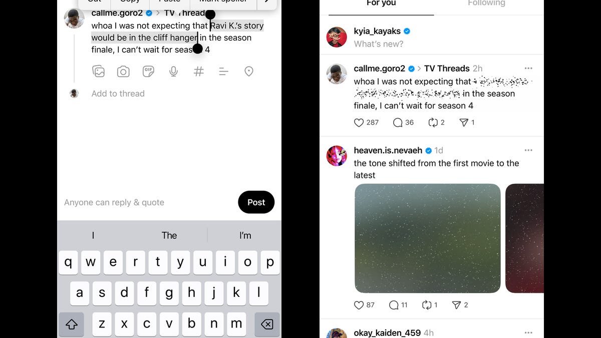 Anyone can use the spoiler feature on their posts. All you have to do is highlight what you want to hide, tap and select “mark spoiler.” That will blur the text or image you selected for others.